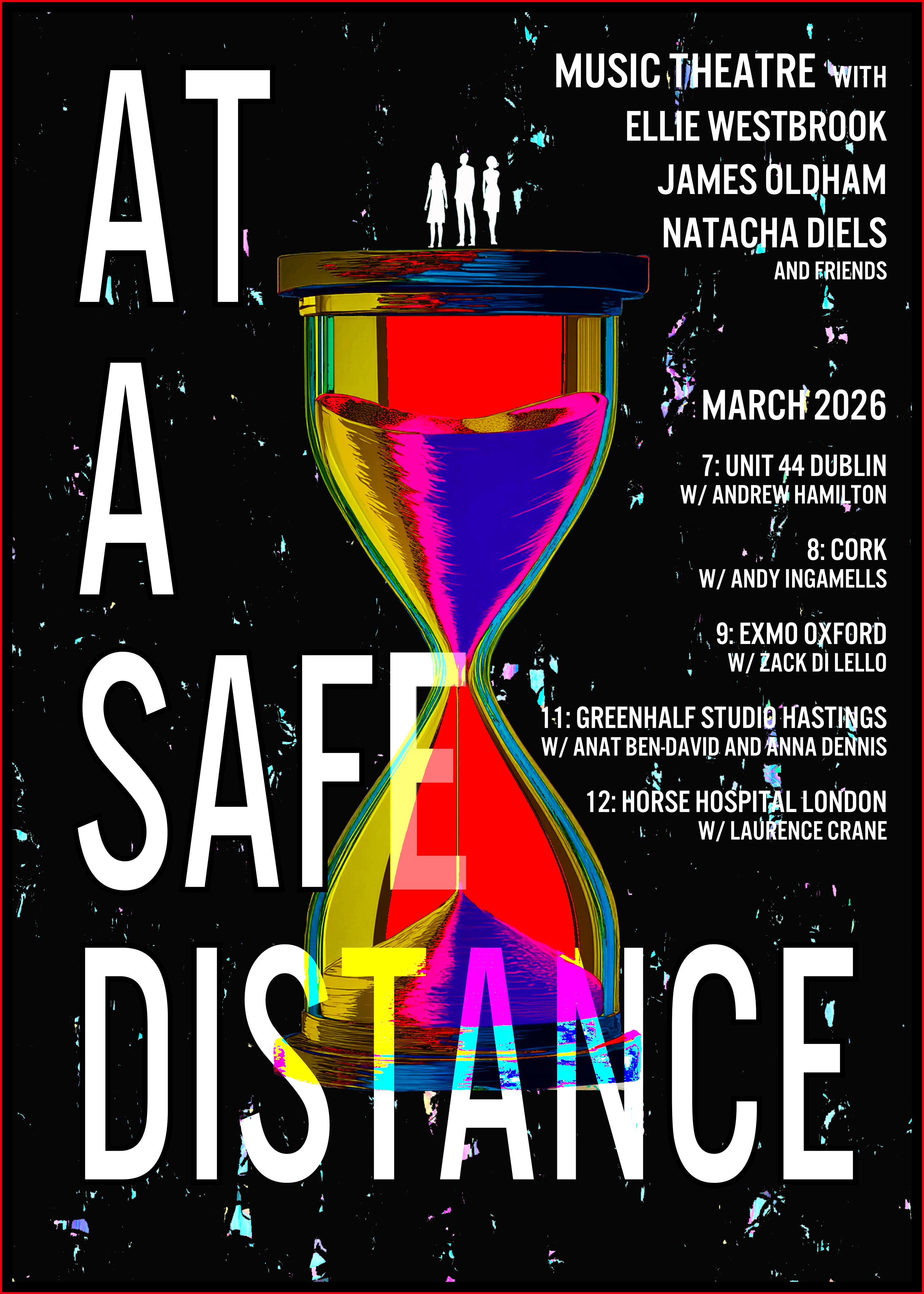 At a Safe Distance tour 2026 with Ellie Westbrook, Natacha Diels and guest artists in each location. Ellie and I will be performing the Human Scene from Waste Paper Opera’s 2020 production Syrup Tracing; or on the significance of rising and/or falling. We will also perform new work and sequences alongside a new set by Natacha Diels, which comprises At a Safe Distance. Dublin, Cork, Oxford, Hastings, London